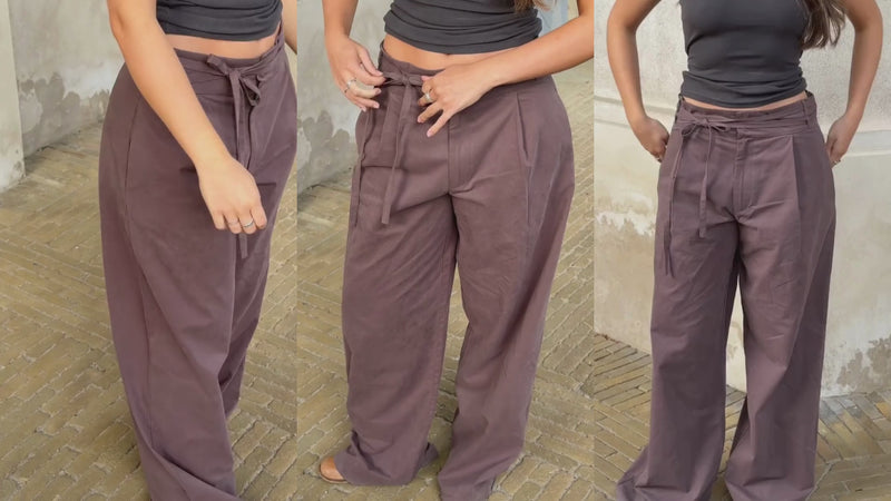 Anna in our Ava Pants. The Ava pants are made of 100% cotton and are the most perfect both comfortable and dressy pants. You can style them however you like.